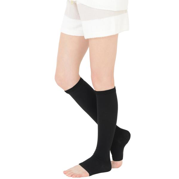おやすみ用 着圧 ハイソックス 肌にやさしい表糸綿100% トゥレス オープントゥ ひざ下丈 23-25cm