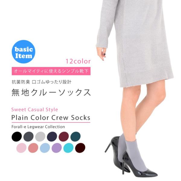かわいい カラークルーソックス 口ゴムゆったり ナイロン シンプル 無地 靴下 日本製 13cm丈