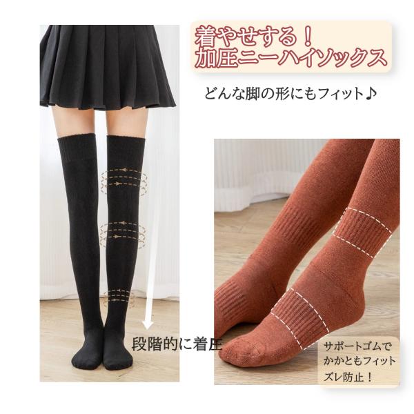 ニーハイソックス 着圧 厚手 あったか 靴下 女の子 着圧ソックス ロング丈 膝上 冬 着やせ