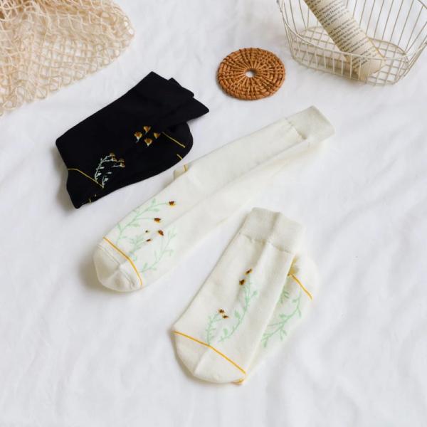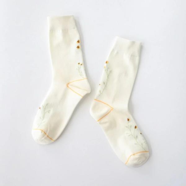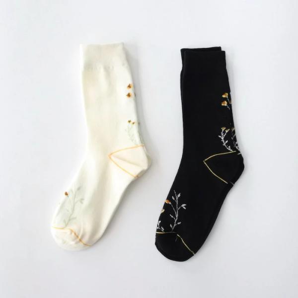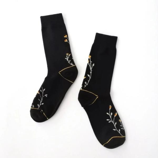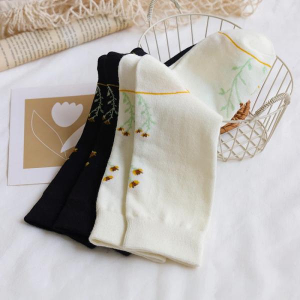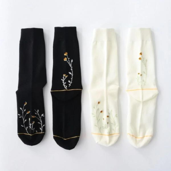 黄色い小花 柄 ソックス 靴下 レディース 総柄 白 黒 ホワイト ブラック かわいい ナチュラル系