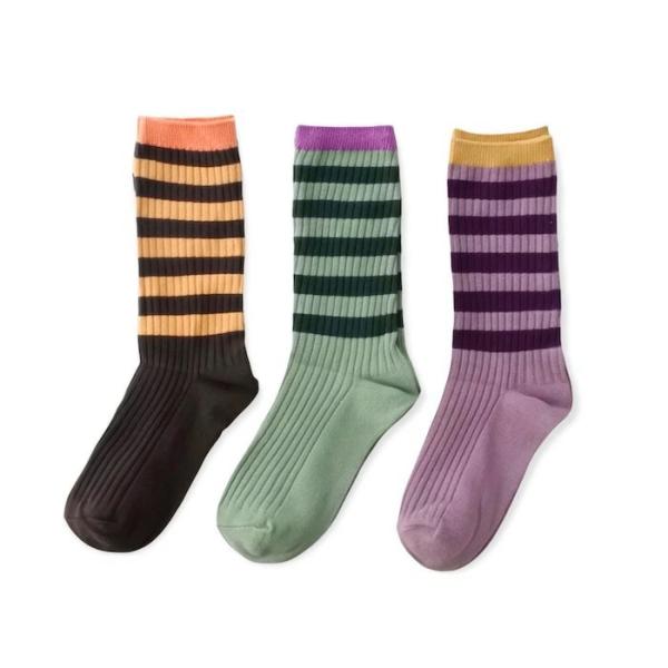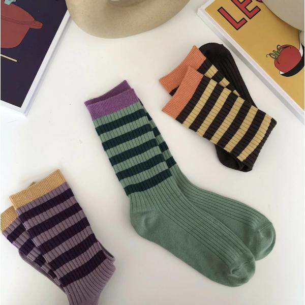 靴下 リブ 切り替え ボーダー ソックス レディース かわいい オシャレ ファッション 足元コーデ