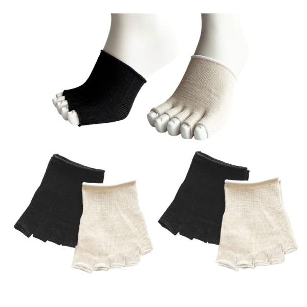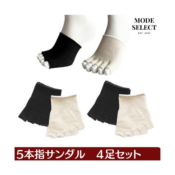 5本指ソックス オープントゥ ハーフソックス 5本指サンダル シルク混 グルカサンダル つま先カバー 指先なし 指切りソックス 蒸れ防止 男女兼用 4足セット A07