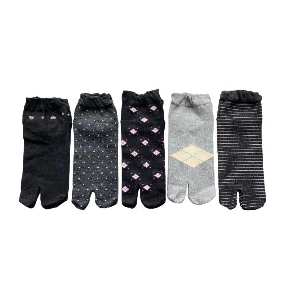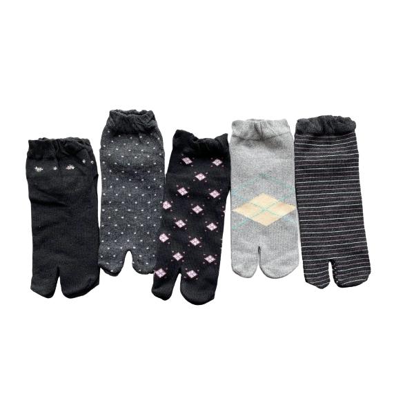 足袋ソックス レディース 靴下 足袋型シューズ 綿混 かかと付 口ゴムゆったり 23-25cm 5足セット(柄はお任せ)B05