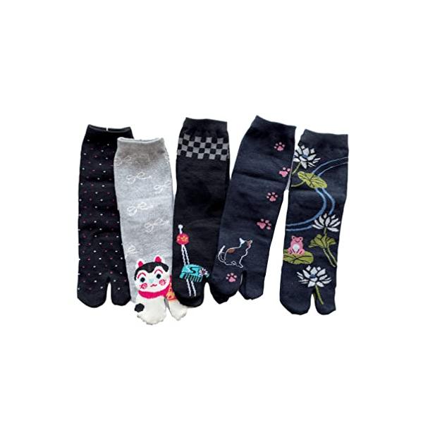 [5足セット] 足袋ソックス レディース 靴下 足袋型シューズ 和柄 スニーカー かわいい 女性 ショートソックス (Aセット) B17