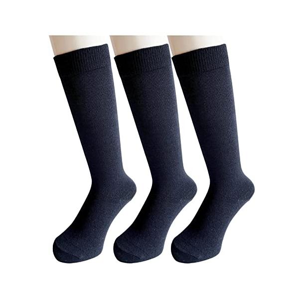 ハイソックス レディース 紺 ハイソックス メンズ 通勤 通学 女の子 薄手 綿混 平編み 3足セット (紺色) C81