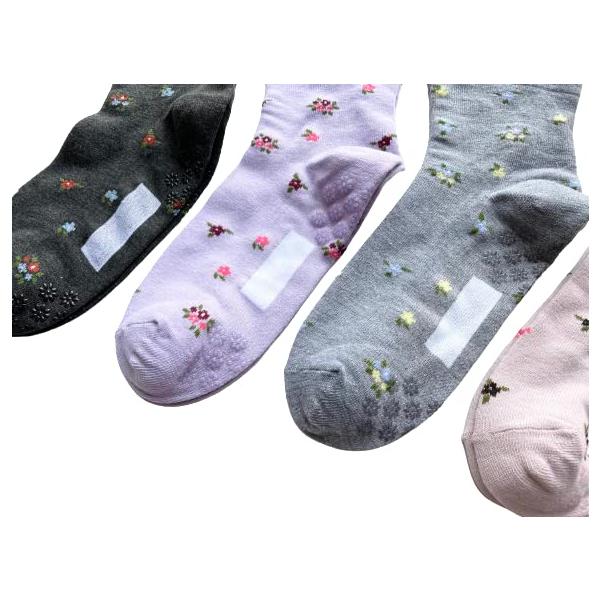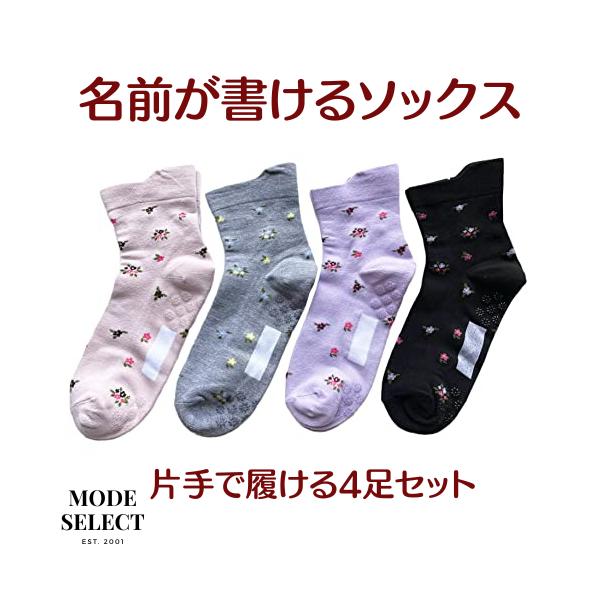 靴下 レディース お中元 滑り止め付 名前が書ける 片手で履ける 靴下 介護 かわい いおしゃれ 施設 病院 4足セット(色お任せ) C97