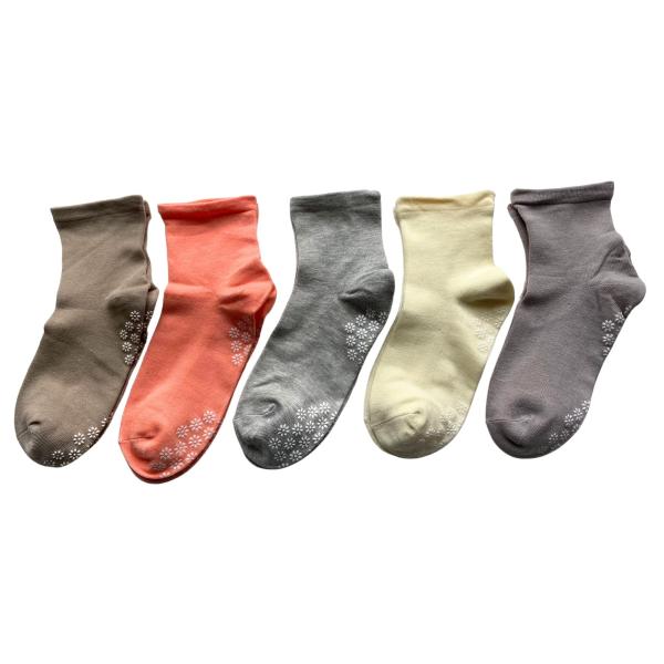 靴下 レディース 滑り止め付 5足組 ソックス レディース 薄手 夏 足裏 すべり止め付 口ゴム ゆったり 5足セット (色はお任せ) E13
