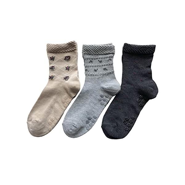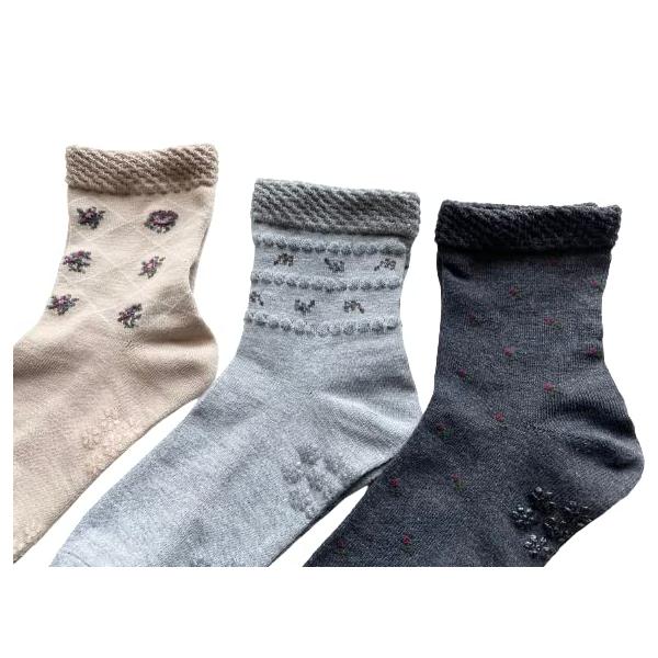 靴下 レディース 滑り止め付 綿混 靴下 すべり止め付き ゆったり口ゴム 綿混 3足セット(色はお任せ) E17