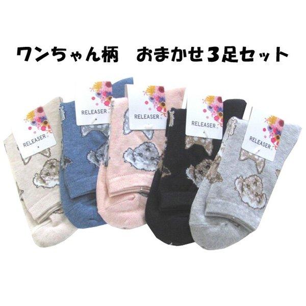 靴下 かわいい 動物柄 レディース ソックス おまかせ 3足セット 22cm-24cm 日本製