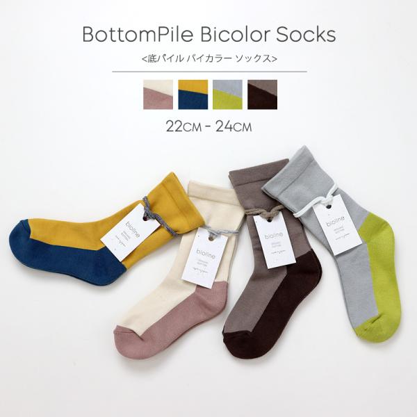 レディース 靴下 日本製 biollne ビオルネ 足底パイル編み配色 ソックス 322224メール便対応