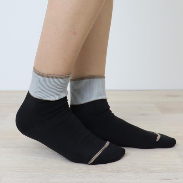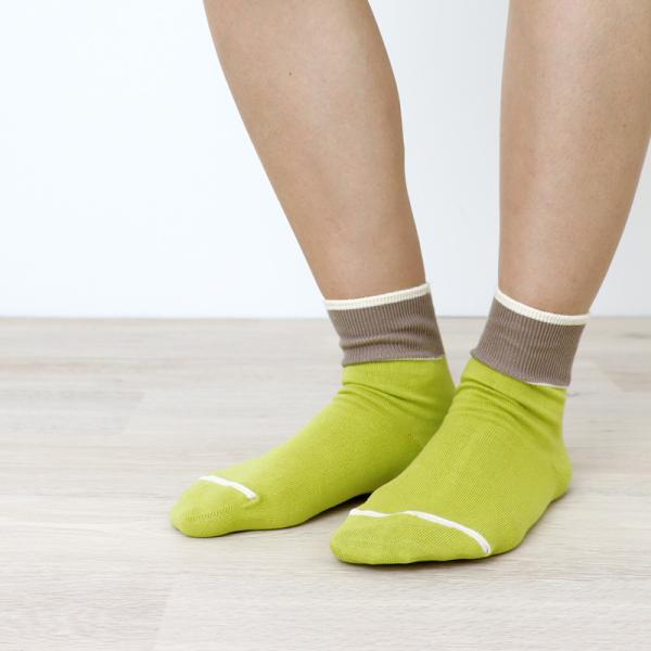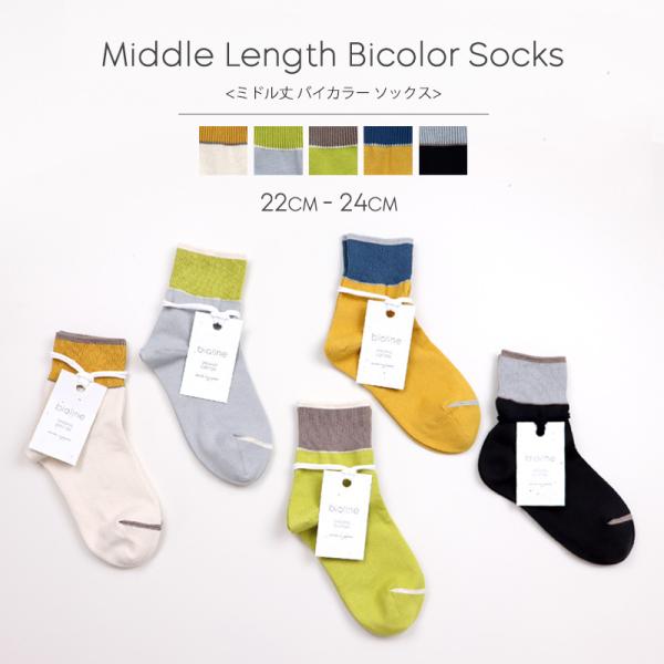 レディース 靴下 厚手 暖かい ルームソックス biollne ビオルネ ミドル丈配色口ゴムリブ編みソックス 323232メール便対応