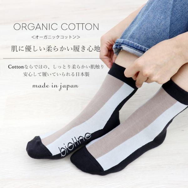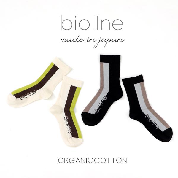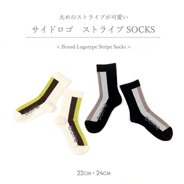 レディース ソックス 日本製 biollne ビオルネ サイドロゴ ストライプ ソックス 336231 メール便対応女性用 靴下 ギフト オールシーズン