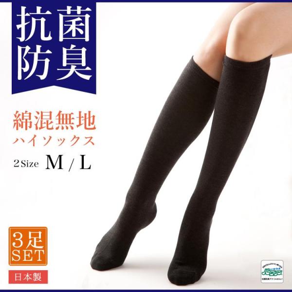 ハイソックス 3足セット 抗菌 防臭 レディース 日本製 綿混 コットン ソックス 無地 ブラック 靴下 送料無料 247
