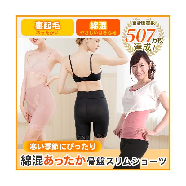 芦屋美整体 裏起毛 綿混あったか骨盤スリムショーツ 同サイズ2枚組(ロゼベージュorブラック)