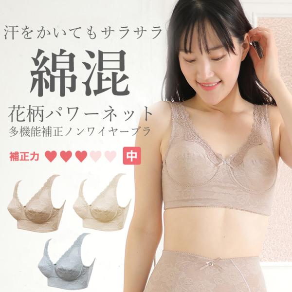 【50%OFF】綿混花柄パワーネット ノンワイヤーブラ タムラ 補正下着 ミディアム補正 YTJ07[M便 1/2]
