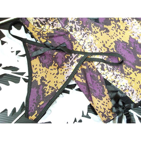 USAインポート ランジェリー ガーターベルト付き スリーインワン&Tバックショーツ セット下着 パイソン柄 蛇柄/wob009