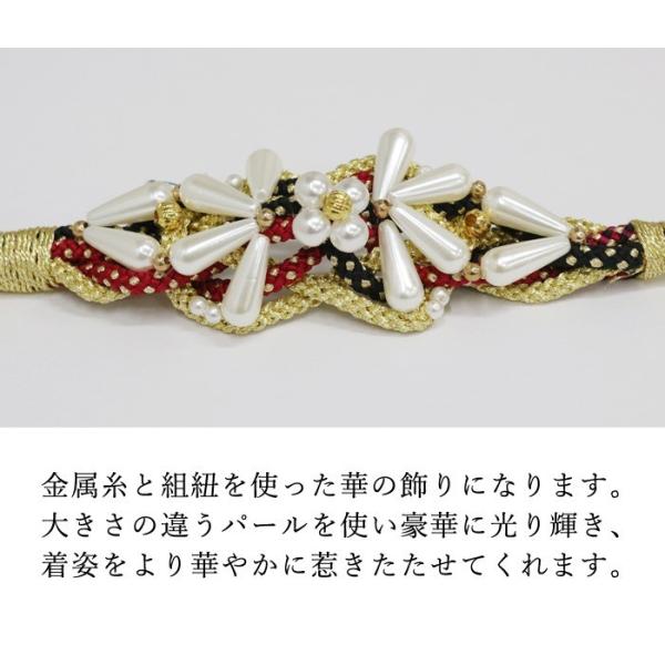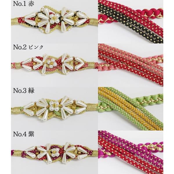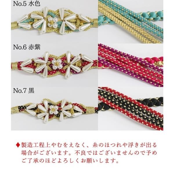 【残りわずか】振袖用 (03) 帯締め 正絹 パール 花飾り 絹100% 赤 ピンク 緑 黄緑 紫 水色 黒 振袖 成人式 結婚式 帯〆 組紐 丸組 花