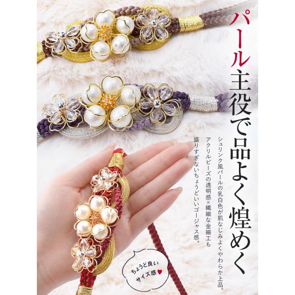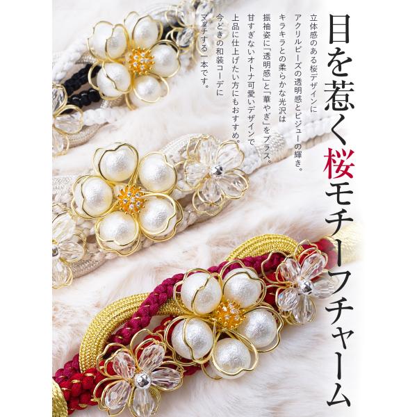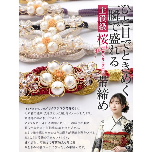 【新作】帯締め 帯〆 金糸 銀糸 桜チャーム サクラグロウ シュリンク風パール アクリルビーズ 金細工 通年用 全5色 高級 プレミアム 女性 和装 成人式 おしゃれ