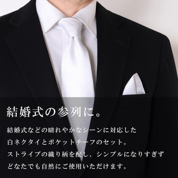 ネクタイ 結婚式 ポケットチーフ 2点セット フォーマル 礼装ネクタイ 撥水加工 メンズ ストライプ 白ネクタイ 冠婚葬祭 セレモニー 披露宴