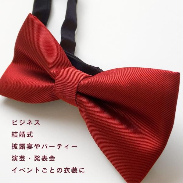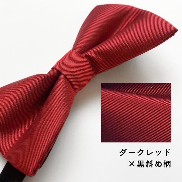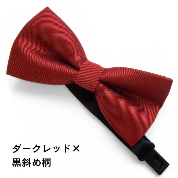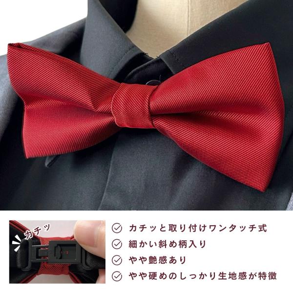 haoa 蝶ネクタイ メンズ フック式 ワンタッチ bow tie ボウタイ しっかり生地 斜線織り模様 高級感 結婚式 簡単着脱 長さ調節 赤 黒 red black