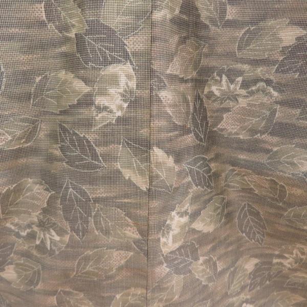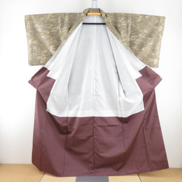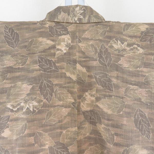 紬 着物 葉っぱ模様 正絹 薄茶色x砂折 袷 広衿 カジュアル 仕立て上がり着物 身丈159cm