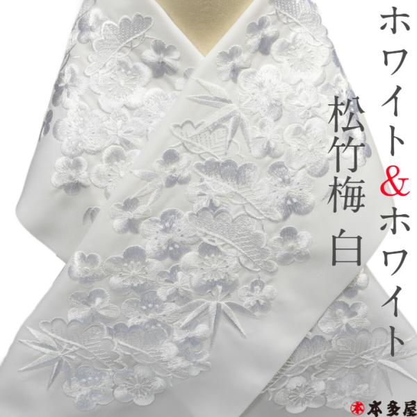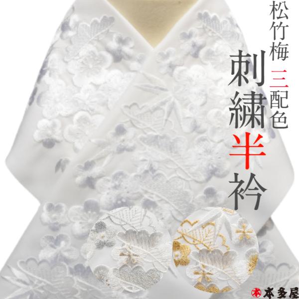 半衿 半襟 松竹梅 豪華刺繍 シルエリー 白 ホワイト 銀 シルバー 金 ゴールド 日本製 振袖 成人式 花嫁衣裳 式典 祝い 結婚式 入学式 卒業式 留袖 訪問着 袴
