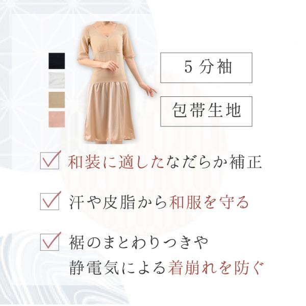 和装インナー 着物用 肌着 裾よけ一体型 汗取りパッド付き 和装下着 和装 下着 浴衣 肌襦袢 5分袖 成人式 卒業式 入学式 前撮り グラモア FT0093【返品交換可】