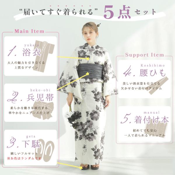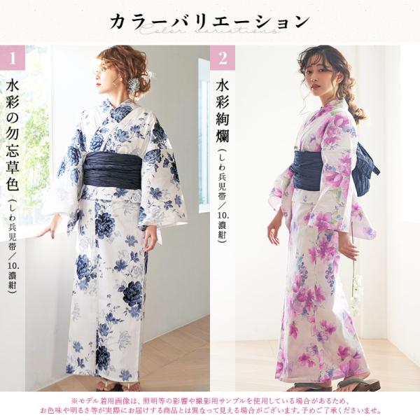 【先行予約/5月中旬より順次発送予定】 浴衣 レディース セット 簡単(ゆかた・しわ兵児帯・下駄・着付け本・腰ひも)綿 紺 紫 ピンク 白 青