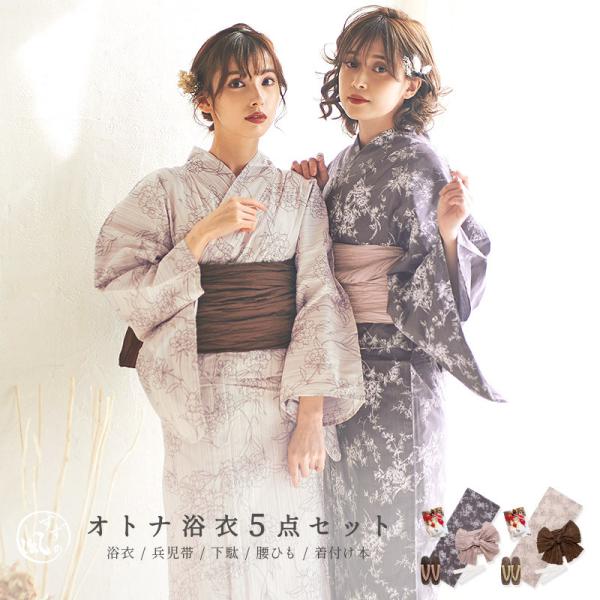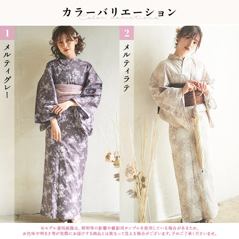 浴衣セット レディース 簡単(ゆかた・しわ兵児帯・下駄・着付け本・腰ひも)綿 白 花柄 アンティーク 大人 くすみカラー ニュアンス 10代 20代 30代 2025年