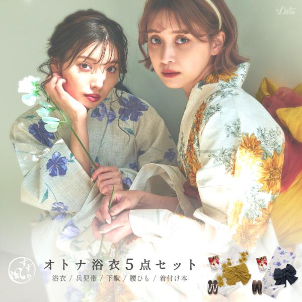 【先行予約/5月中旬より順次発送予定】浴衣 レディース セット 簡単(ゆかた・しわ兵児帯・下駄・着付け本・腰ひも)綿 レトロ 白