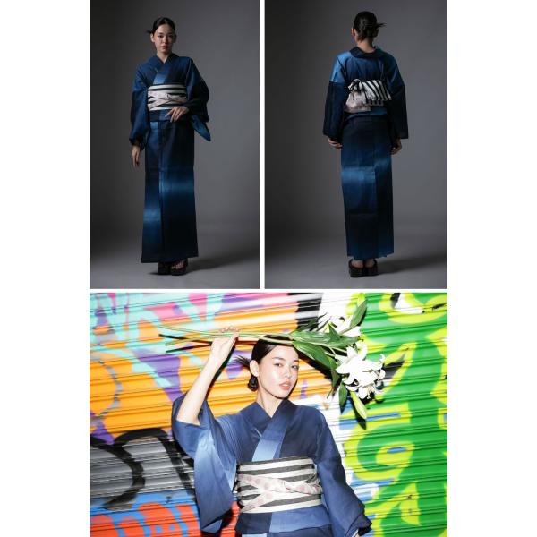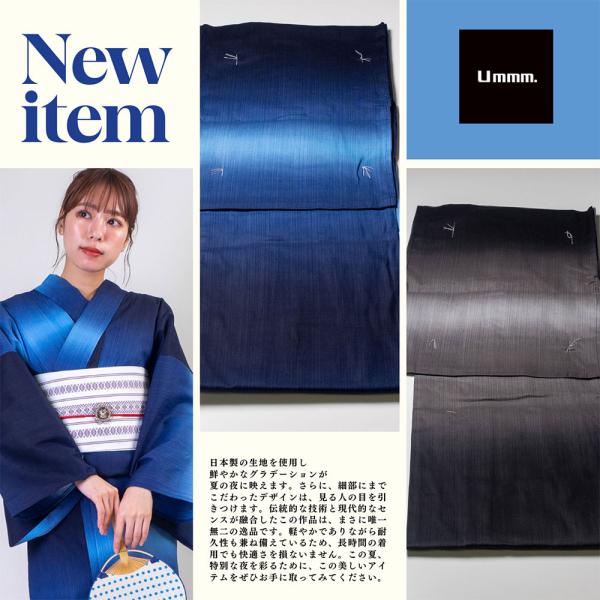 高級お仕立て上がり浴衣単品【Ummm. Ummm.グラデーションレディース浴衣】Ummm. レディース浴衣 ブルー グレー 日本製生地 2色展開 ぼかし 無地調