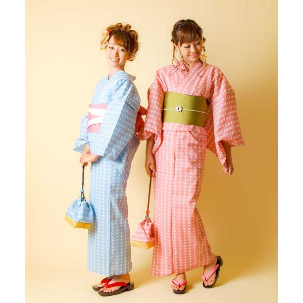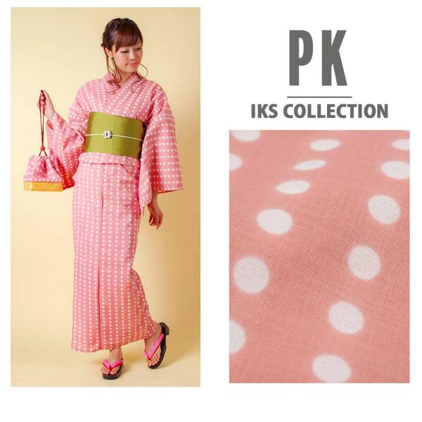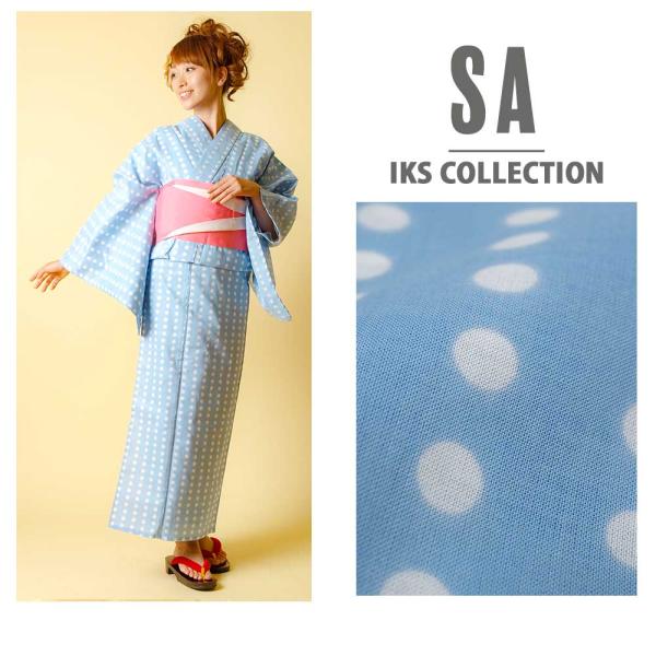 【期間限定特価】 【IKS COLLECTIONドット柄レディース浴衣単品】すぐに着られる お仕立て上がり浴衣 水玉 ドット柄 サックスブルー ピンク キュート