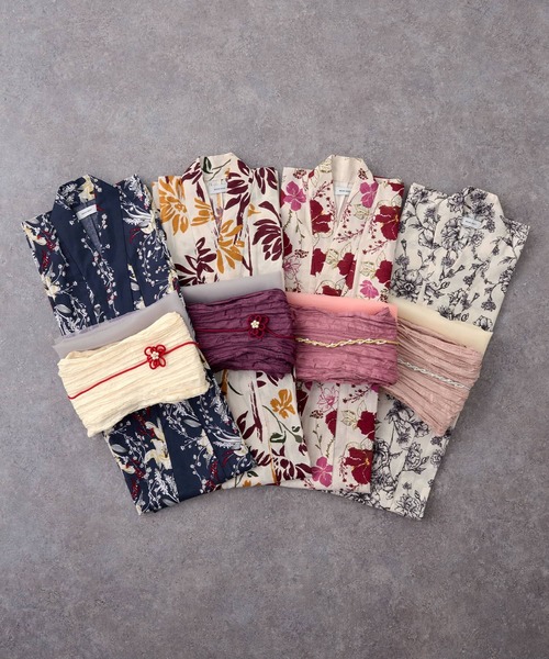浴衣 選べるアソート花柄 浴衣 5点セット「浴衣+兵児帯+飾り帯+帯留め+下駄」 レディース