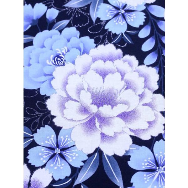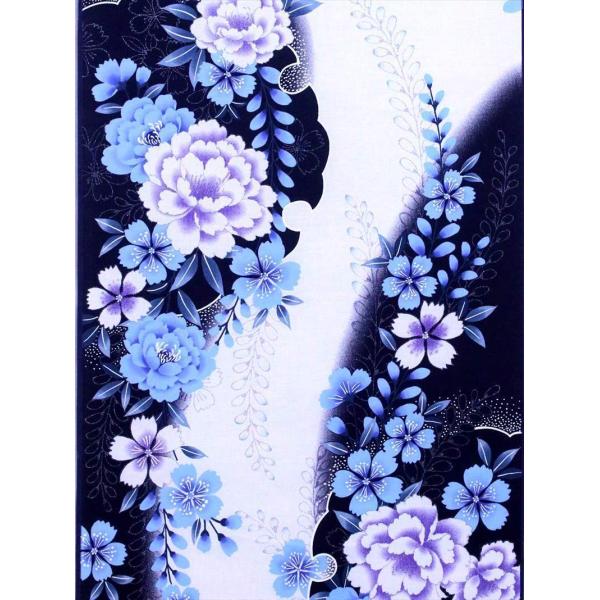 浴衣反物 教材用 No.1 濃紺地 牡丹・雪輪柄【ゆかた反物の堀田】