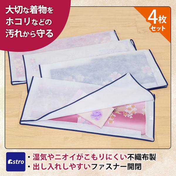 アストロ公式 製品保証付き 着物収納袋 4枚組 不織布 たとう紙 畳紙 2方開き 着物収納ケース 浴衣 保管袋 通気性 和装 和服 ファスナー式 アストロ 173-10
