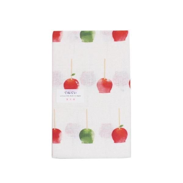 捺染てぬぐい「リンゴ飴」【3枚以上で送料無料】 手拭い 食べ物 小紋柄 濱文様 ケイス 日本製 生地 日本てぬぐい ハンカチ タオル 飾り 布 包む メール便