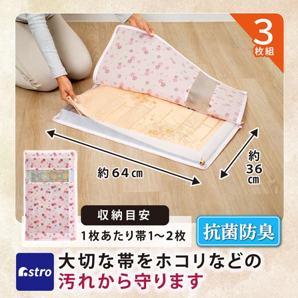 アストロ公式 帯収納袋 抗菌防臭 桜柄 3方開き 3枚組 窓あり 着物収納ケース 通気性の良い不織布 着物収納袋 保管袋 たとう紙の代わり 透明窓付き 173-32