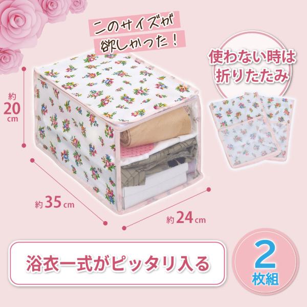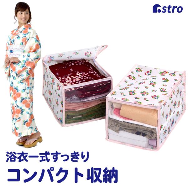 アストロ 着物収納ケース コンパクトサイズ プチローズ柄 小花柄 2個組 通気性の良い不織布 着物収納袋 収納ボックス 保管袋 和装小物 も入る たとう紙 173-33