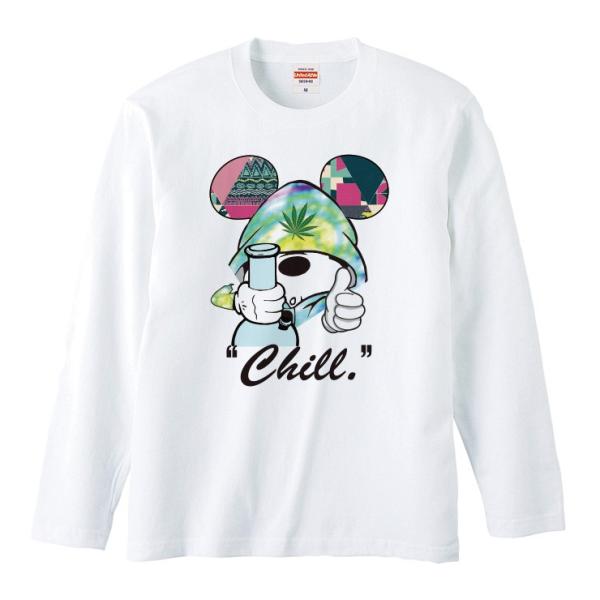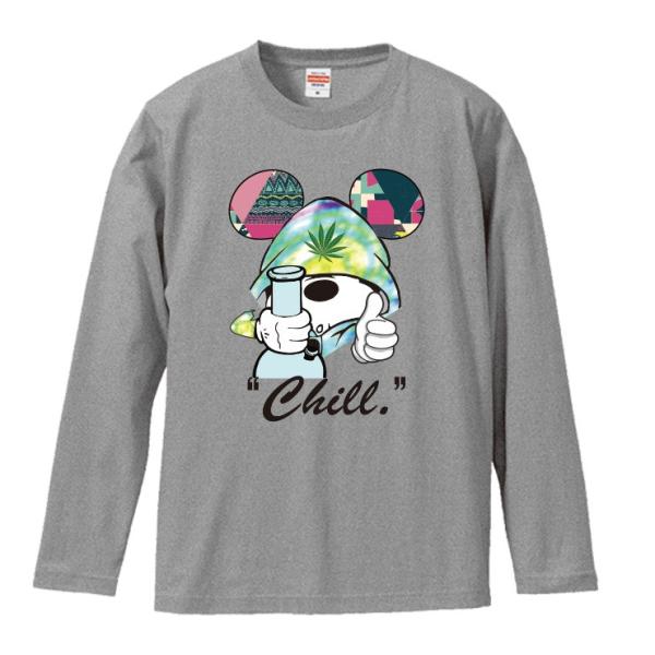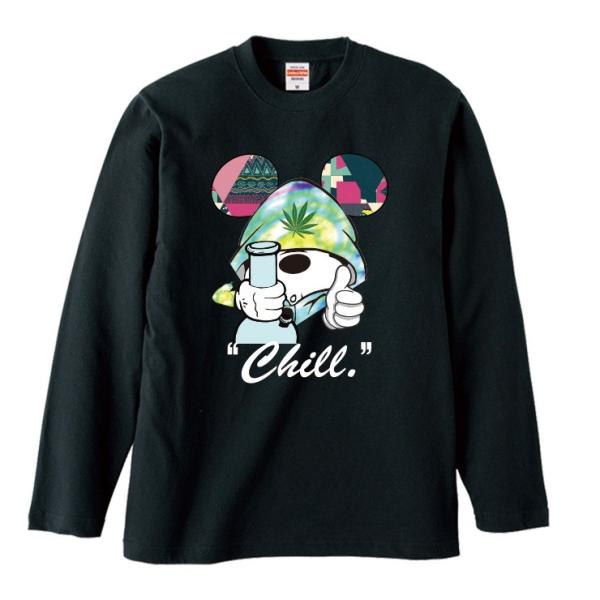 Tシャツ メンズ ロンT 長袖 ブランド Uネック Smoking Mouse ネズミッキー カンナビス マリファナ ガンジャ chill out