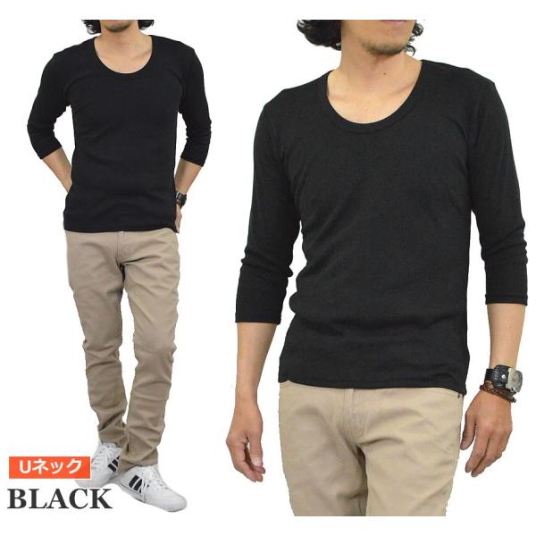 Tシャツ メンズ 七分袖 7分袖 無地 カットソー インナー Uネック Vネック インナーシャツ 七分袖Tシャツ 無地Tシャツ 7分袖Tシャツ 下着 白 黒