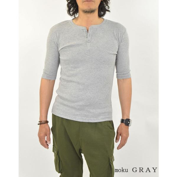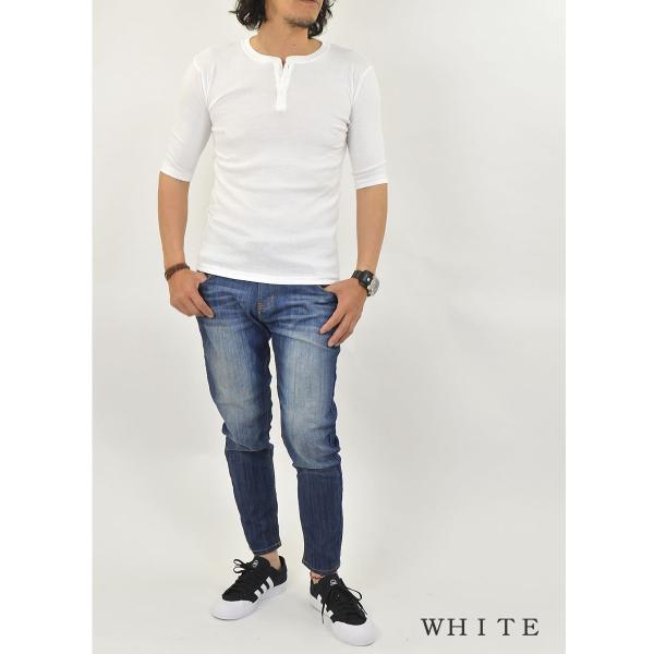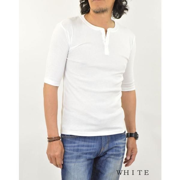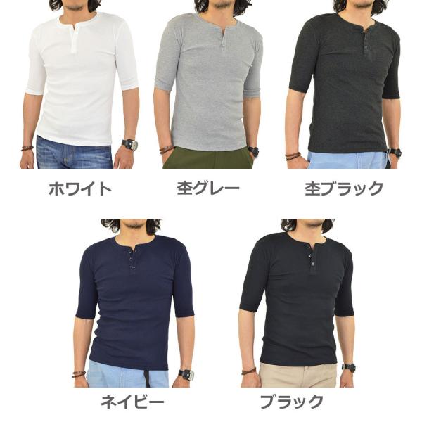 Tシャツ メンズ 半袖 ヘンリーネック 五分袖 5分袖 無地 ヘンリーネックTシャツ カットソー インナー 春 夏 秋 シンプル 白 黒 グレー ネイビー(濃紺)