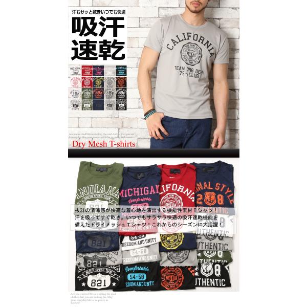 Tシャツ メンズ 半袖 吸汗速乾 ドライメッシュ アメカジt カレッジt 半袖Tシャツ メンズ M L LL 3L 脇汗対策 トップス カットソー/爆買