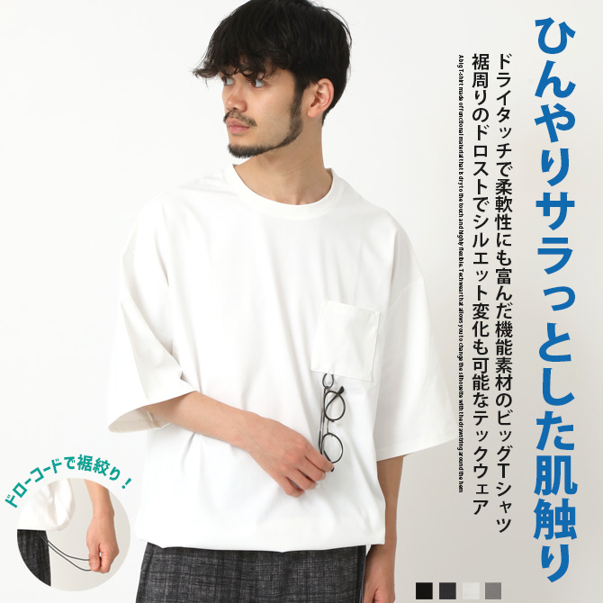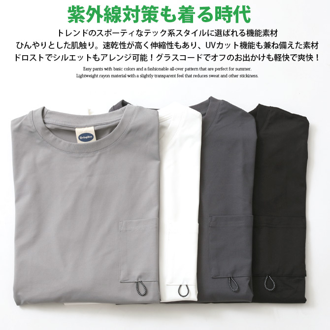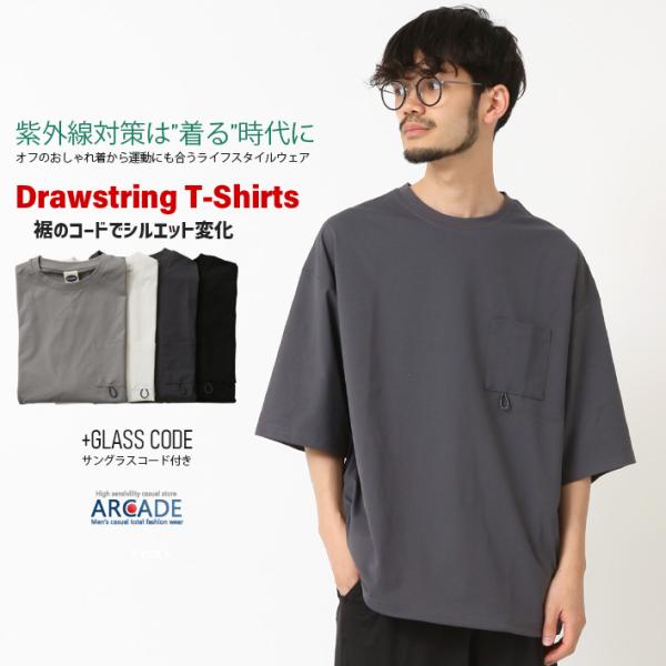 UVカット tシャツ 半袖 ドライストレッチ メンズ オーバーサイズ 5分袖Tシャツ upf50+ UVカット 裾 ドローコード グラスコード ポケットTシャツ 2025夏/爆買