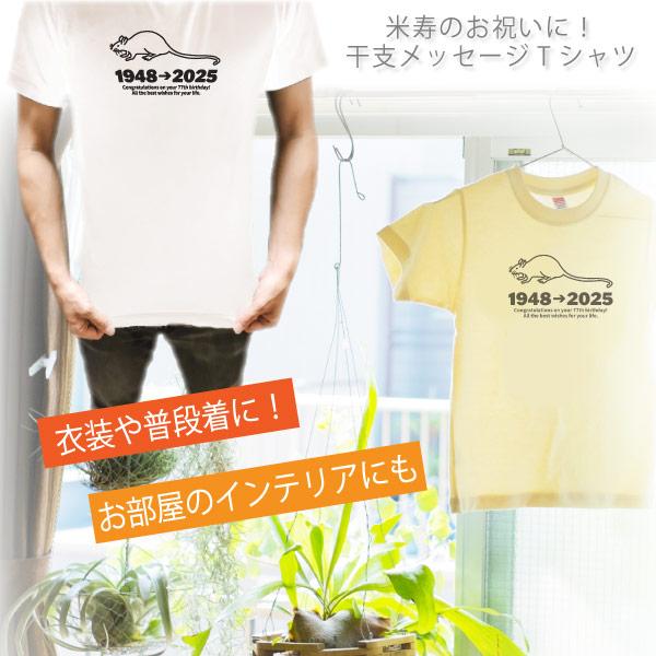 喜寿 喜寿祝い プレゼント 干支 子 男性 女性 喜寿のお祝い ねずみ 父 母 メッセージ Tシャツ 77歳 ギフト かわいい ちゃんちゃんこ 縁起物 夫婦 1501 1500 085