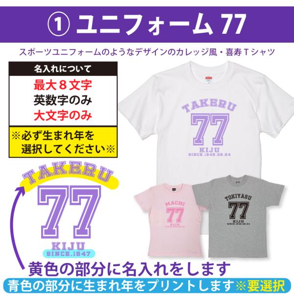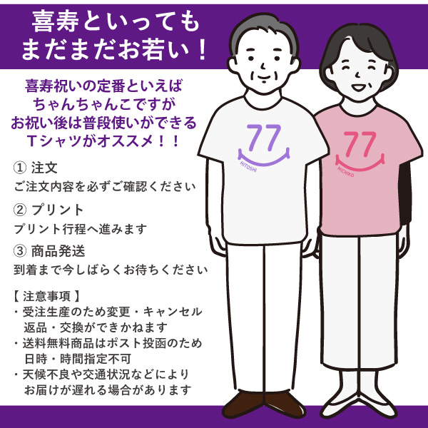 喜寿 祝い 喜寿のお祝い 品 女性 男性 77歳 プレゼント 名入れ 喜寿のお祝いの品 おしゃれ Tシャツ 贈り物 ギフト オリジナル 父 母 家族 両親 1501 1500 085
