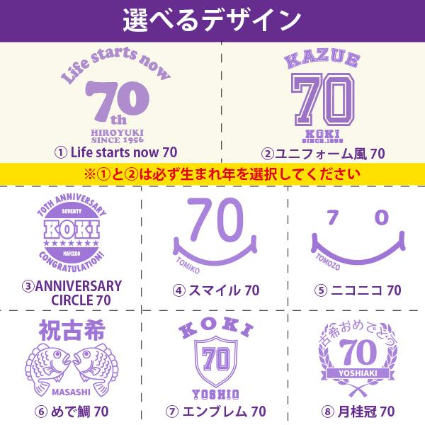 無地 プリント 古希 名入れ 古希祝い 古希のお祝い 古稀祝い 品 女性 男性 プレゼント 70歳 おしゃれ Tシャツ 古稀 オリジナル 紫 何歳 何色 1501 1500 085