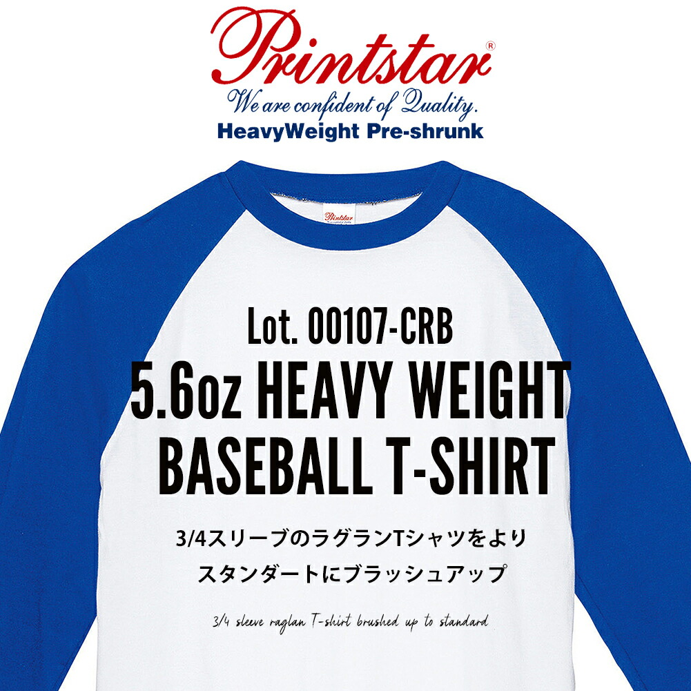 Tシャツ メンズ 7分袖 プリントスター ヘビーウェイト 七分袖 tシャツ ラグラン ラグランtシャツ 肉厚 XS 綿 ラグラン袖 M カジュアル 白