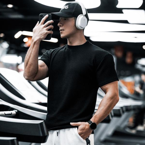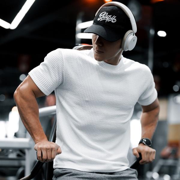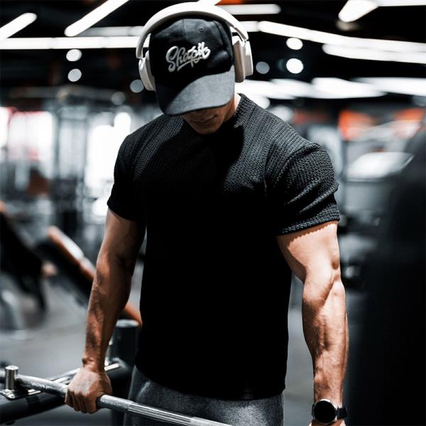 ワッフル tシャツ メンズ おしゃれ 半袖 tシャツ トレーニングウェア 無地 ストレッチ tシャツ 男性 ドライ 速乾 スポーツ フィットネス 筋トレ ジムウェア