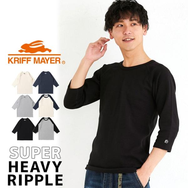 メンズ 半端袖T 無地 インナーTシャツ 厚手 シンプル 刺繍 アメカジ カジュアル メンズ 男 スーパーヘビーリップル7分袖TEE KRIFF MAYER クリフメイヤーメンズ
