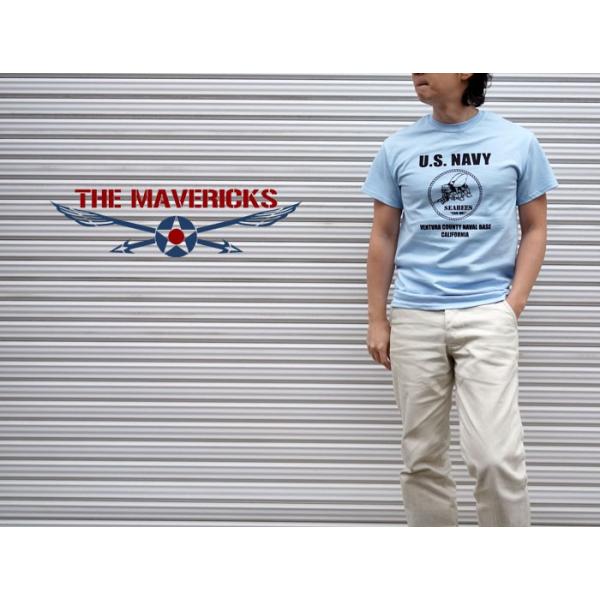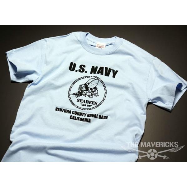 ミリタリー 半袖 Tシャツ メンズ 米海軍 SeaBees 蜂モデル THEMAVERICKS ブランド 水色 ライトブルー